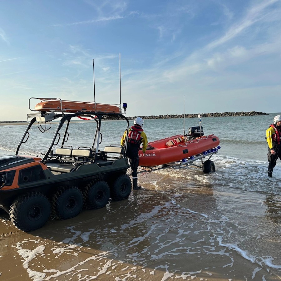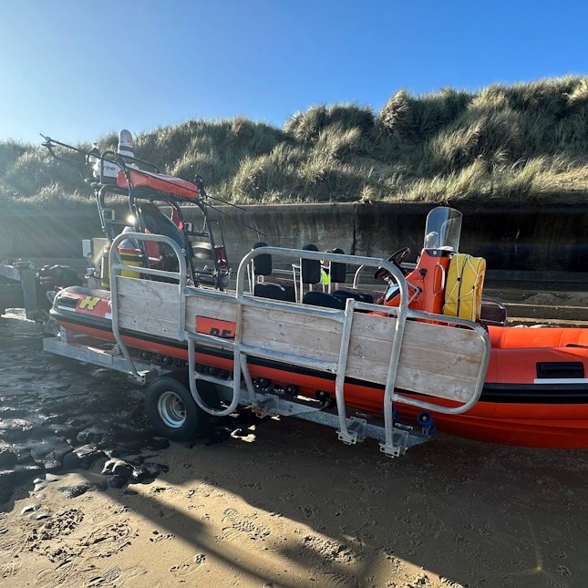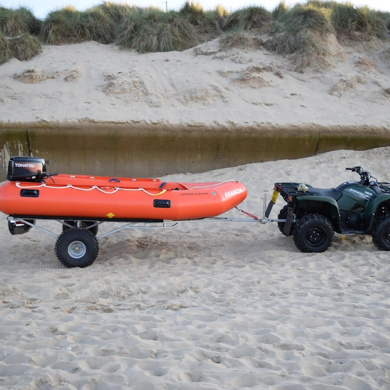 Fully equipped with Radar, IR camera, VHF radios and a host of emergency equipment, she can operate up to 7 miles out to sea. She is launched and recovered by our purpose built vehicle, designed to deal with the angle of our ramp and sea conditions at various states of the tide.